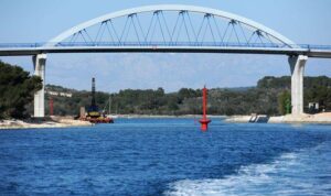 Od otoka Ugljana, s kojim je još u nedavnoj prošlosti bio spojen plićinom koja se mogla pregaziti, dijeli ga kanal Mali Ždrelac prokopan 1883. godine, a 1979. produbljen do dubine od 4 metra i premošćen mostom u mjestu Ždrelcu. Most je obnovljen i napravljen veći 2010. godine.